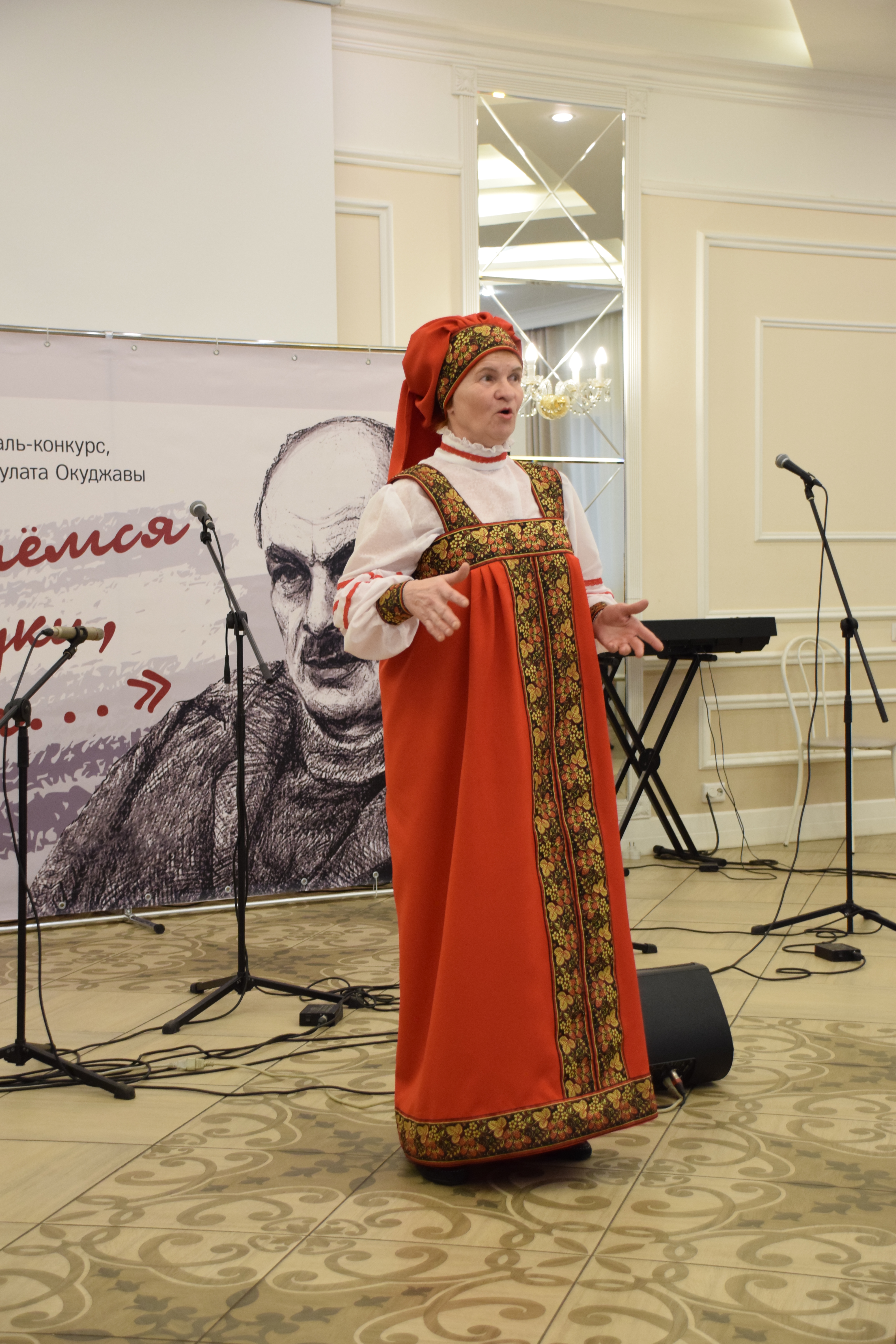 В одном из выставочных залов Дома Окуджавы размещена экспозиция под названием «Я ранен войной на всю жизнь». Здесь создана атмосфера шестидесятых, и, кажется, слышен стук пишущей машинки, — на такой писали свои произведения о войне отслужившие фронтовики.